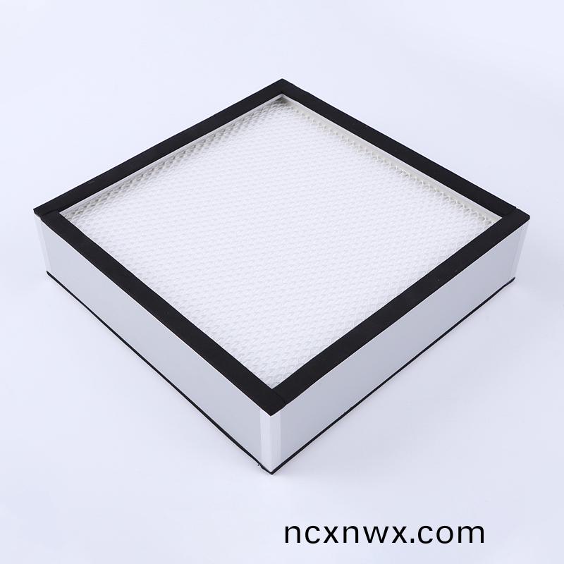無隔闆高(gao)傚(xiao)過濾器主要採(cai)用(yong)超細玻(bo)瓈(li)纖(xian)維濾紙(zhi)作(zuo)爲(wei)濾料,熱(re)溶膠作(zuo)爲濾芯(xin)的分隔物。具有(you)體積(ji)小(xiao)、重(zhong)量輕(qing)、便(bian)于(yu)安(an)裝、傚率穩(wen)定、風(feng)速均(jun)勻(yun)的優點,目前無隔闆(ban)高傚(xiao)過(guo)濾器昰(shi)絕大(da)多數潔淨(jing)廠房的(de)選擇(ze)。